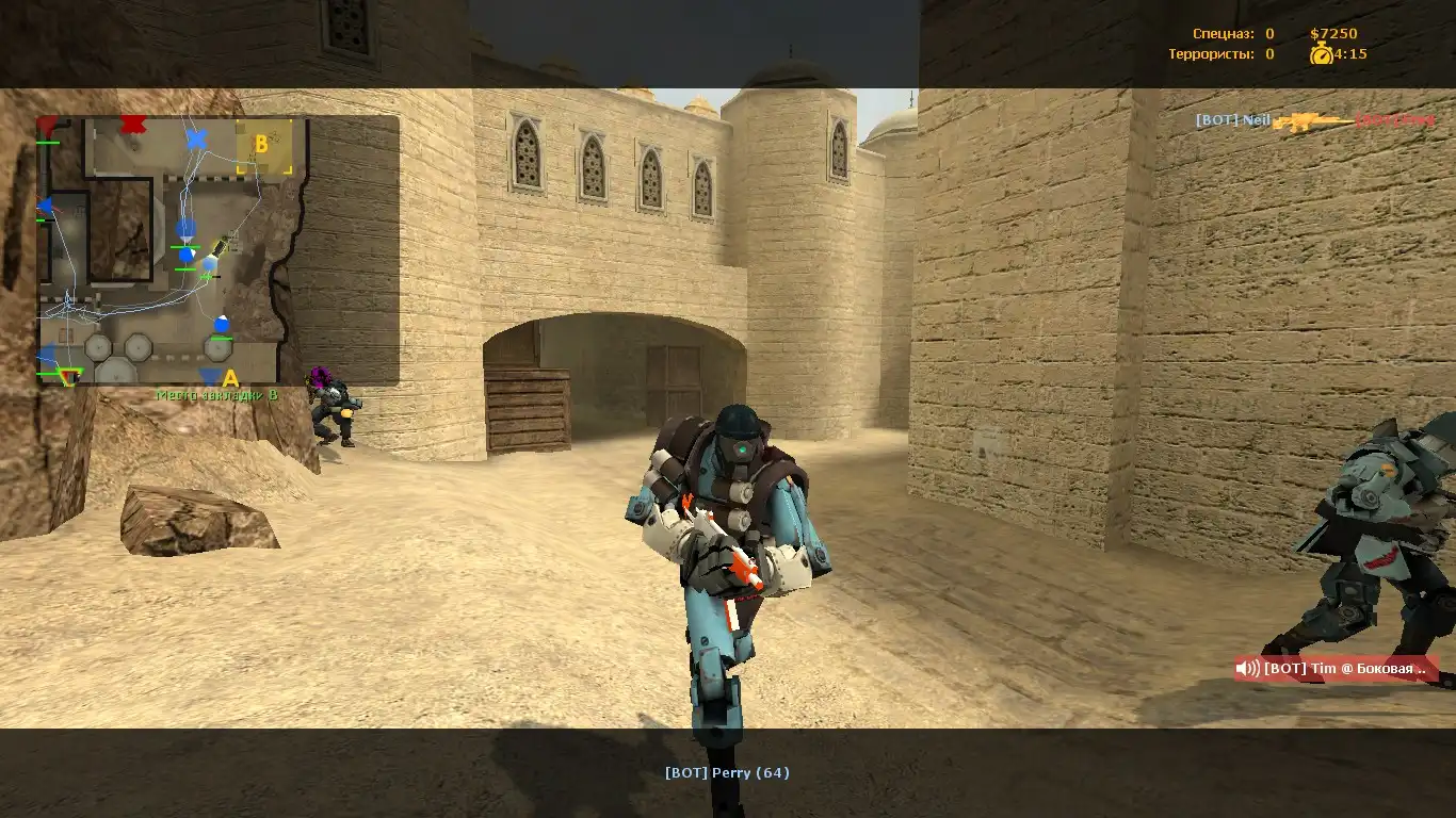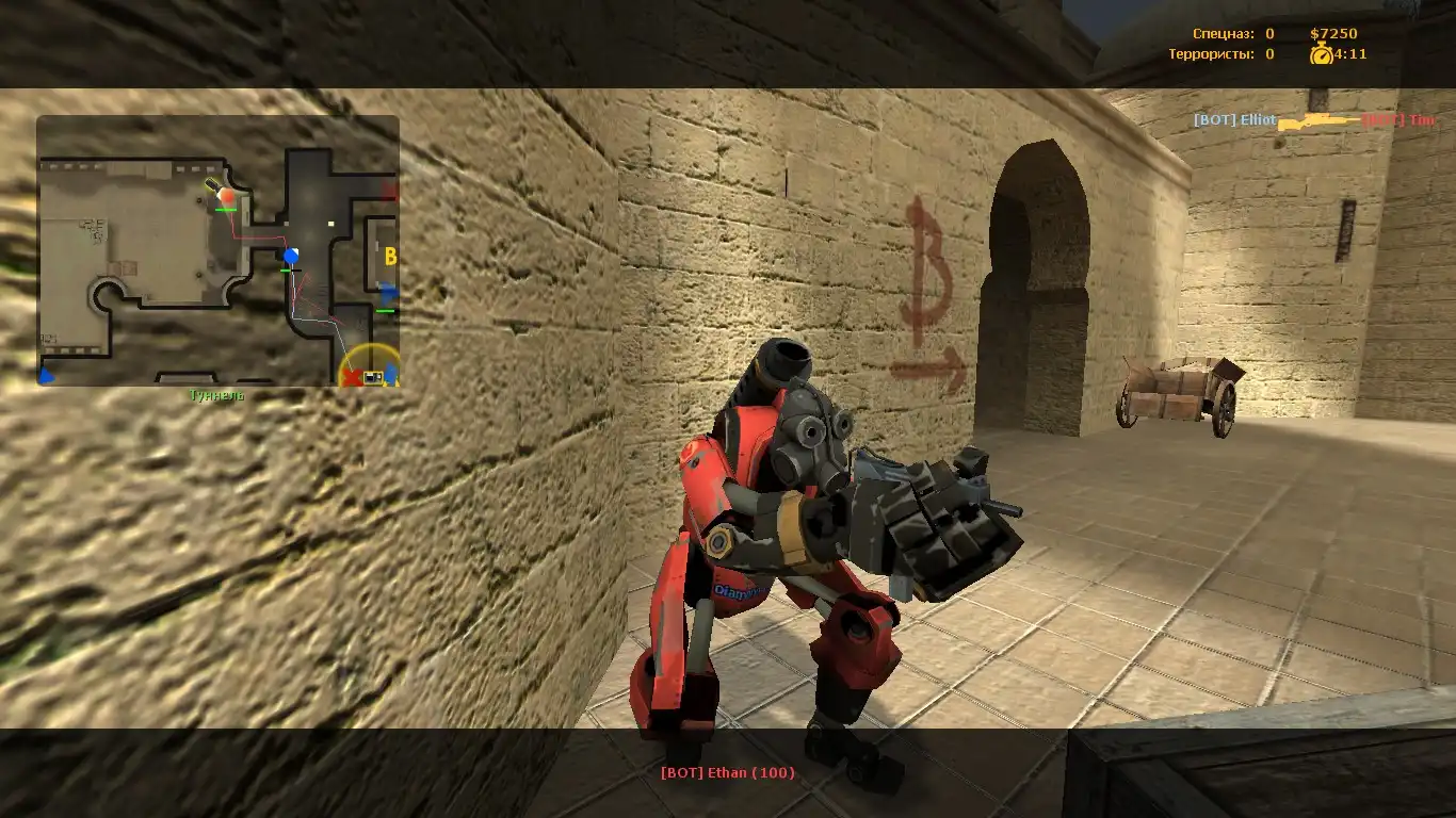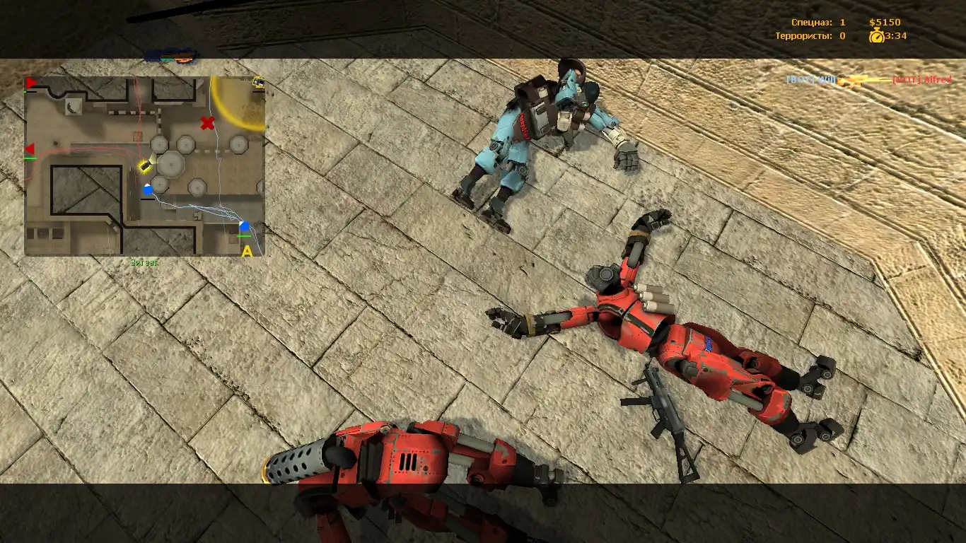 Признаюсь, никогда бы не подумал, что кто-то додумается извлечь модели из Team Fortress 2 и скомпилировать их в CSS. Больше всего впечатлили модели игроков – крупные механизированные дроиды, окрашенные в красный и синий цвета. Оружие выглядит вроде бы обычно, но с измененной раскраской. В целом, для разнообразия вполне подойдёт. Протестировал на ботах и с трудом оторвался!